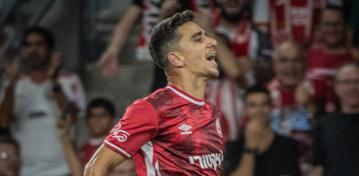 הבית"רים מחבקים את כובש השער הראשון, עדי יונה (באדיבות: מחלקת המדיה של בית"ר ירושלים)