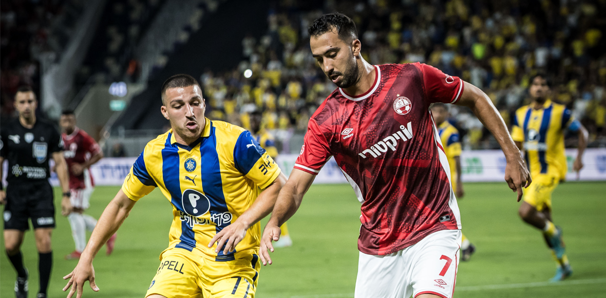 ויקטור סטינה ואיימן עלי במאבק על הכדור מהמחזור האחרון (צילום: בני יהודה תל-אביב)