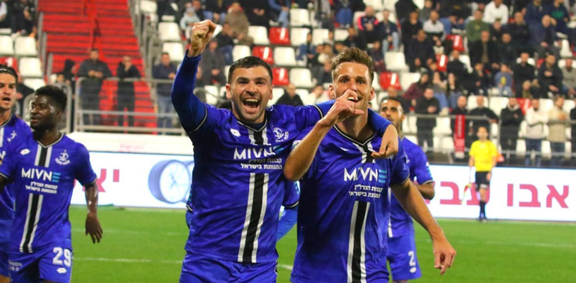 מארק קוסטה, גיבור הצמד, חוגג עם איתי רוטמן (צילום: מועדון הכדורגל הפועל פתח-תקוה)