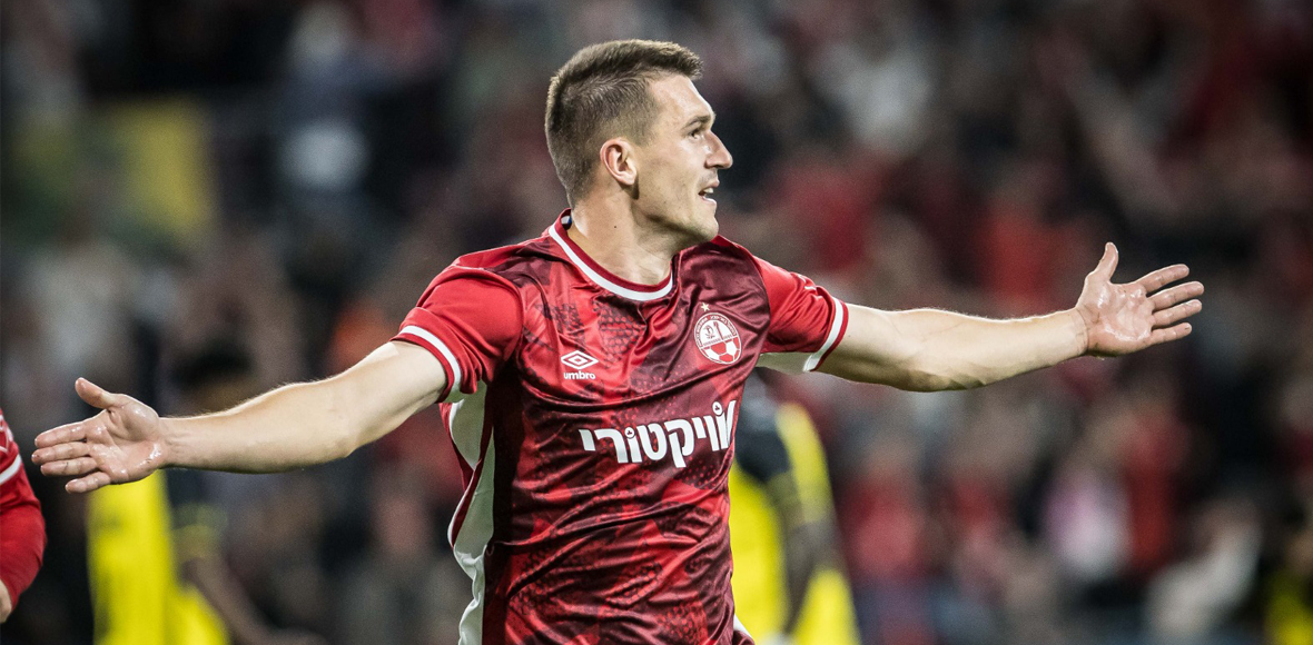 גיבור הצמד, שגיא דרור, חוגג ניצחון נהדר בשכונת התקווה (צילום: בני יהודה ת"א, טביביניו)